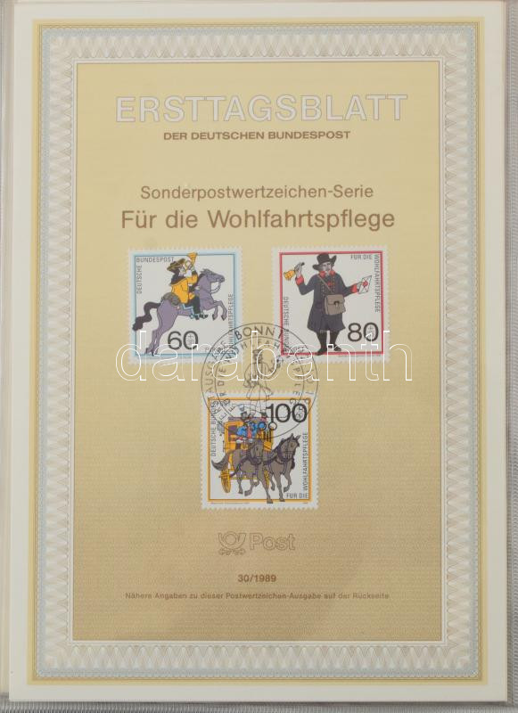 NSZK kb 50 db Ersttagsblatt az 1988-1990 közötti időszakból, közepes g... https://www.darabanth.com/hu/513-Filatelia-kepeslap-numizmatika-mutargy-konyv-papirregiseg-ekszer-aukcio/513.0/Kiemelt-kulfoldi-filatelia-tetelek-es-gyujtemenyek/Kulfoldi-gyujtemenyek-es-tetelek~11/NSZK-kb-50-db-Ersttagsblatt-az-1988-1990-kozotti-idoszakbol-kozepes-gyurus-ETB-berakoban~II3470886