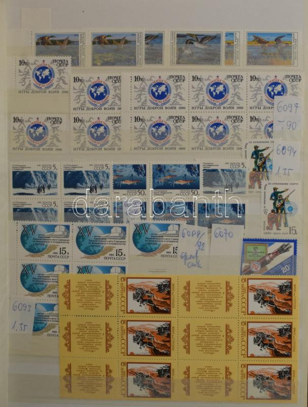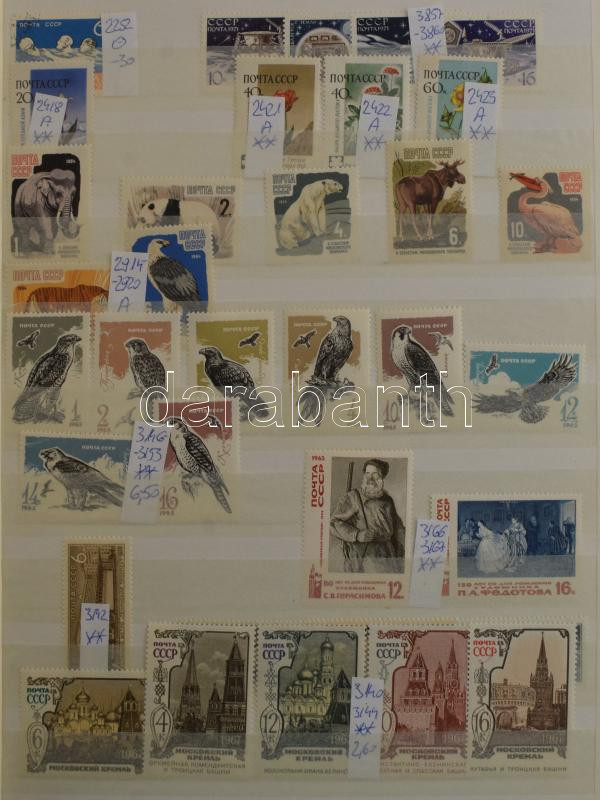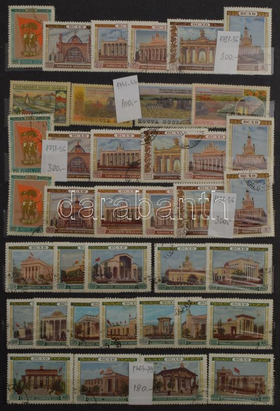 Szovjetunió tétel főleg bélyegzett anyag az 50-es évektől benne gyűjteményrész, rendező, 10-es tétel, sok képes és motívum kiadás, összesen 10 db berakóban közte 8 db A/4, hullámkarton dobozban