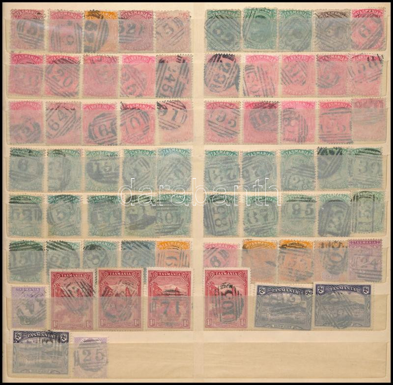 Tasmánia 69 db postaazonosító számbélyegzéssel ellátott bélyeg https://www.darabanth.com/hu/513-Filatelia-kepeslap-numizmatika-mutargy-konyv-papirregiseg-ekszer-aukcio/513.0/Kiemelt-kulfoldi-filatelia-tetelek-es-gyujtemenyek/Kulfoldi-gyujtemenyek-es-tetelek~11/Tasmania-69-db-postaazonosito-szambelyegzessel-ellatott-belyeg~II3465430