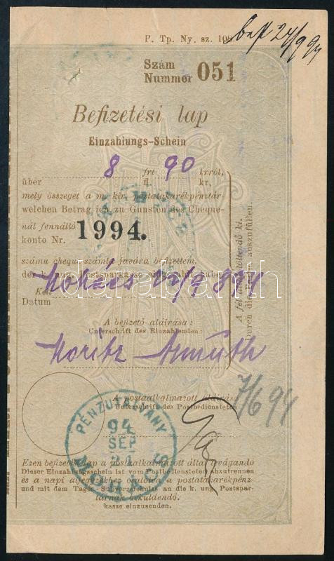 1894 Befizetési lap Színesszámú 2kr bélyeggel, kék "PÉNZUTALVÁNY ... https://www.darabanth.com/hu/513-Filatelia-kepeslap-numizmatika-mutargy-konyv-papirregiseg-ekszer-aukcio/513.0/Kiemelt-magyar-filatelia-tetelek-es-gyujtemenyek/Egyes-magyar-kiadasok-rendkivul-alacsony-kikialtasi-aron~1/1894-Befizetesi-lap-Szinesszamu-2kr-belyeggel-kek-PENZUTALVANY-MOHACS-belyegzessel~II3467026