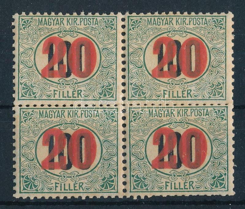Leírás: 1915 Kisegítő portó 20/100f négyestömb, IV vízjel (72.000)