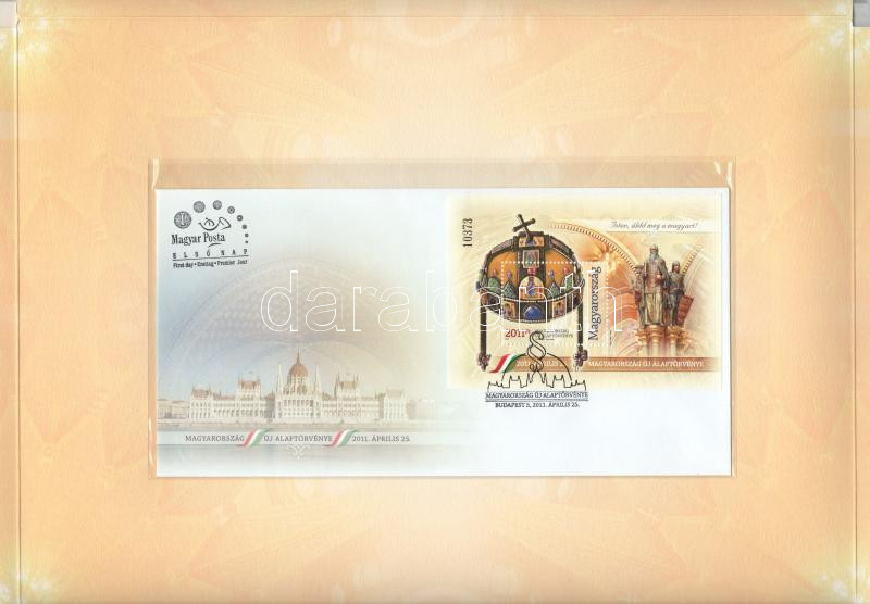 2011 Magyarország új alaptörvénye FDC díszmappában https://www.darabanth.com/hu/513-Filatelia-kepeslap-numizmatika-mutargy-konyv-papirregiseg-ekszer-aukcio/513.0/Kiemelt-magyar-filatelia-tetelek-es-gyujtemenyek/Egyes-magyar-kiadasok-rendkivul-alacsony-kikialtasi-aron~1/2011-Magyarorszag-uj-alaptorvenye-FDC-diszmappaban~II3434472