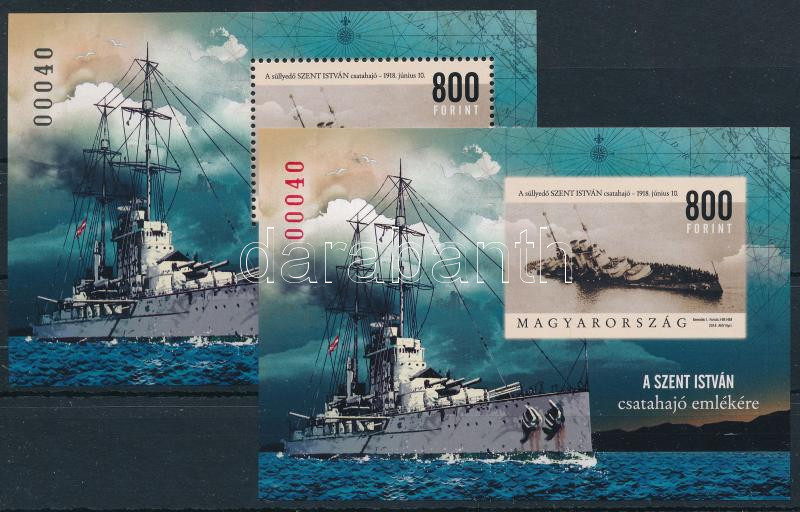 Leírás: 2018 A Szent István csatahajó emlékére fogazott + vágott blokk azonos sorszámmal (28.000)