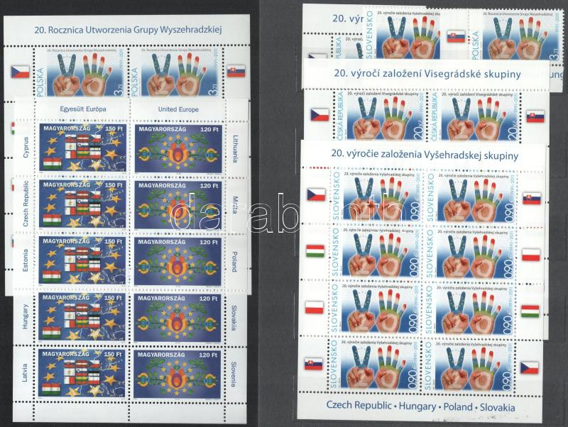 Leírás: 2004-2011 Egyesült Európa kisív + A Visegrádi Csoport alapításának 20. évfordulója szlovák, cseh és lengyel bélyeg és kisívek