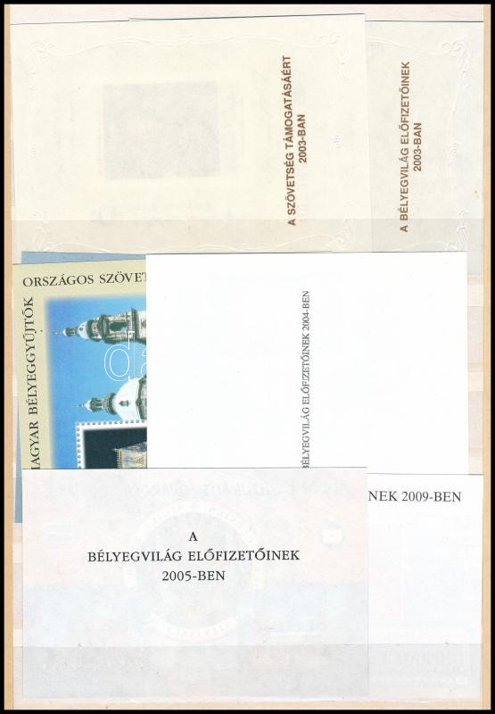 1990-2009 6 klf ajándék emlékív Bélyegvilág előfizetőknek https://www.darabanth.com/hu/513-Filatelia-kepeslap-numizmatika-mutargy-konyv-papirregiseg-ekszer-aukcio/513.0/Kiemelt-magyar-filatelia-tetelek-es-gyujtemenyek/Magyar-gyujtemenyek-es-tetelek~6/1990-2009-6-klf-ajandek-emlekiv-Belyegvilag-elofizetoknek~II3465729