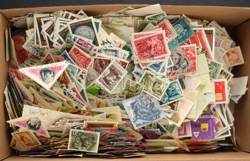 Leírás: Sok ezer darab magyar bélyeg cipős dobozban ömlesztve