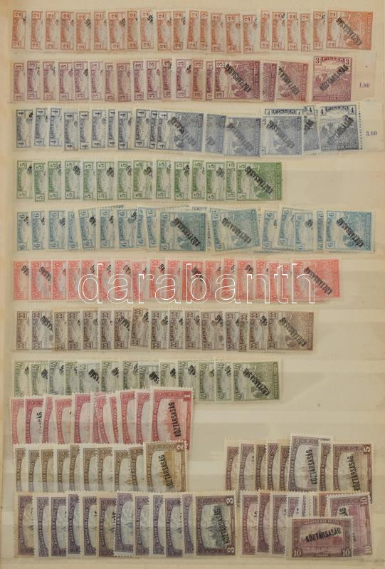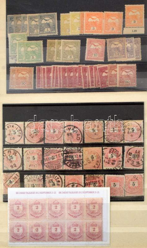 Vegyes magyar tétel az 1945 előtti időszakból, benne Krajcáros bélyegek, szép / olvasható bélyegzésekkel, Arató-Parlament, Köztársaság több példányos bélyegek, stb. összesen 765 db bélyeg 8 lapos A4-es berakóban
