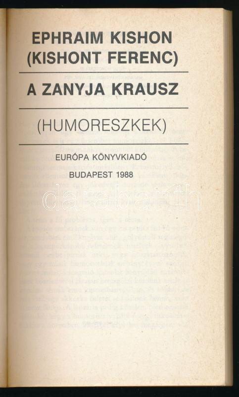 Leírás: Efrájim Kishon: A Zanyja Krausz. (Humoreszkek.) DEDIKÁLT! Bp., 1988, Európa. Kiadói papírkötés.