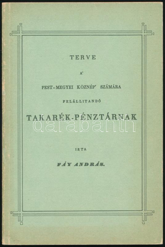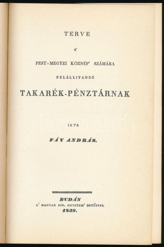 Fáy András: Terve a Pest-megyei köznép számára felállítandó Takarék-pé... https://www.darabanth.com/hu/513-Filatelia-kepeslap-numizmatika-mutargy-konyv-papirregiseg-ekszer-aukcio/513.0/Konyvek/Konyvek-Egyeb-ritkasagok~175/Fay-Andras-Terve-a-Pest-megyei-koznep-szamara-felallitando-Takarek-penztarnak-Bp-198~II3465716