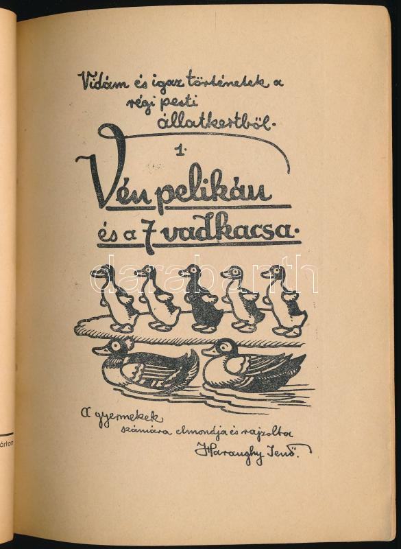 https://www.darabanth.com/hu/513-Filatelia-kepeslap-numizmatika-mutargy-konyv-papirregiseg-ekszer-aukcio/513.0/Konyvek/Konyvek-Egyeb-ritkasagok~175/Haranghy-Jeno-Ven-pelikan-es-a-7-vadkacsa-Vidam-es-igaz-tortenetek-a-regi-pesti-allatkertbol-A~II3473049