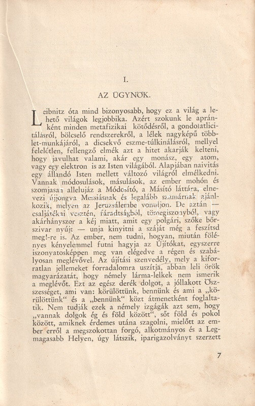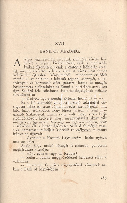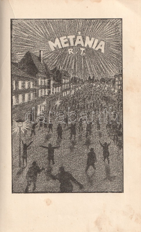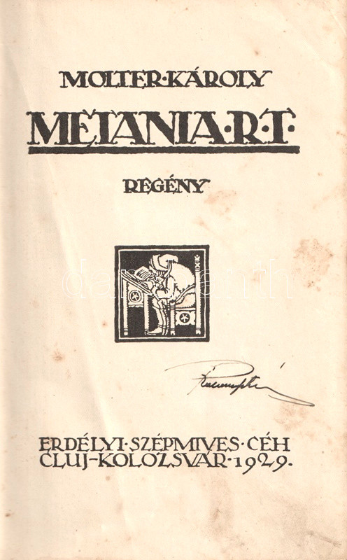 Molter Károly (1890-1981) erdélyi író szürrealista jelenetekkel megtűzdelt, tudományos fantasztikumba hajló szatirikus kalandregénye az erdélyi sci-fi irodalom emlékezetes darabja. Példányunk számozása kitöltetlen, az enyhén foltos címlapon régi tulajdonosi bejegyzés, kötetünk néhány oldalán enyhe foltosság.