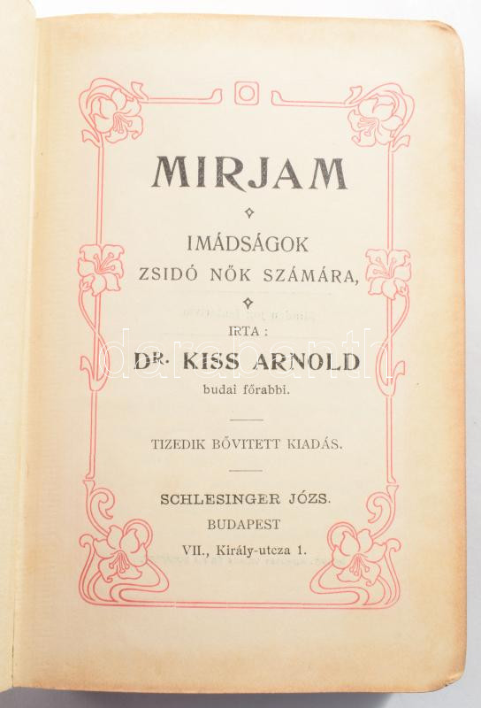 Dr. Kiss Arnold: MIrjam. Imádságok zsidó nők számára. Bp., Schlesinger... https://www.darabanth.com/hu/513-Filatelia-kepeslap-numizmatika-mutargy-konyv-papirregiseg-ekszer-aukcio/513.0/Konyvek/Konyvek-Judaika~169/Dr-Kiss-Arnold-MIrjam-Imadsagok-zsido-nok-szamara-Bp-Schlesinger-Kiado-bor-kotes-a~II3473224