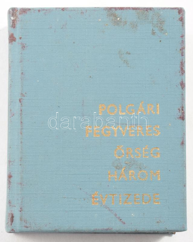 Leírás: Polgári fegyveres őrség három évtizede. Bp., 1983. Minikönyv készült 500 számozott példányban, könyvárusi forgalomba nem került. Balacron kötésben