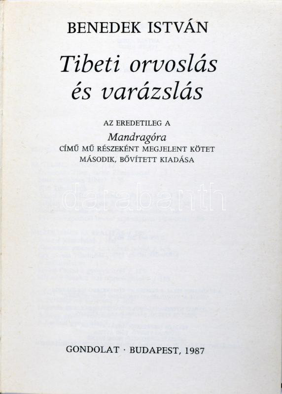 Leírás: Benedek István: Tibeti orvoslás és varázslás. Bp., 1987, Gondolat. Második, bővített kiadás. Kiadói egészvászon-kötés, kiadói papír védőborítóban