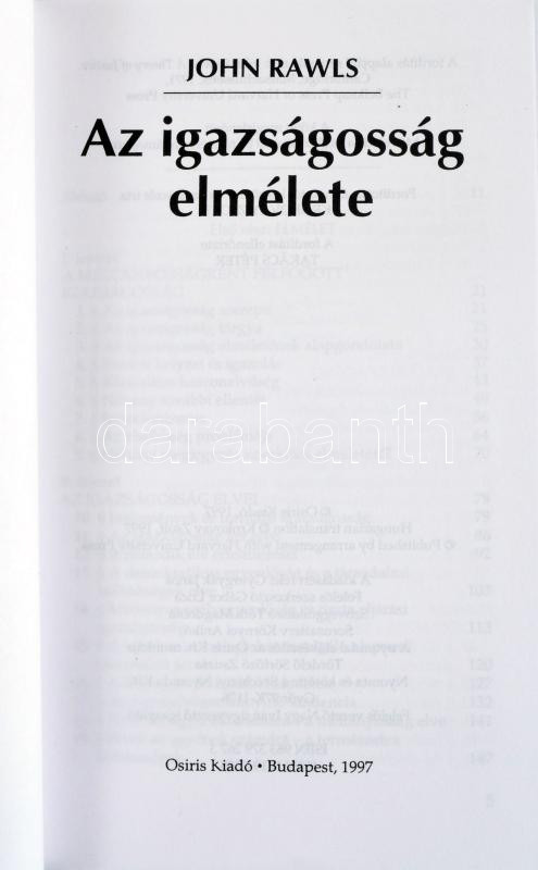 John Rawls: Az igazságosság elmélete. Ford., a mutatót készítette és az utószót írta: Krokovay Zsolt. Osiris Könyvtár Politikai Gondolkodók. Bp., 1997, Osiris, 735 p. Kiadói papírkötés.
