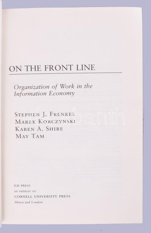On the Front Line. Organization of Work in the Information Economy. Stephen J. Frenkel. Marek Korczynski, Karen A. Shire, May Tam. Ithaca - London,1999,Ilr Press - Cornell University Press. Angol nyelven. Kiadói papírkötés.