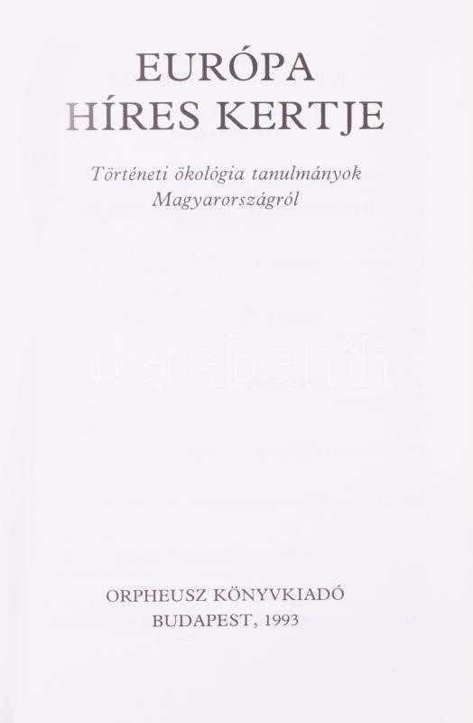 Leírás: R. Várkonyi Ágnes-Kósa László: Európa híres kertje (történeti ökológiai tanulmányok Magyarországról) Orpheusz Kiadó, 1993. Kiadói papírkötés