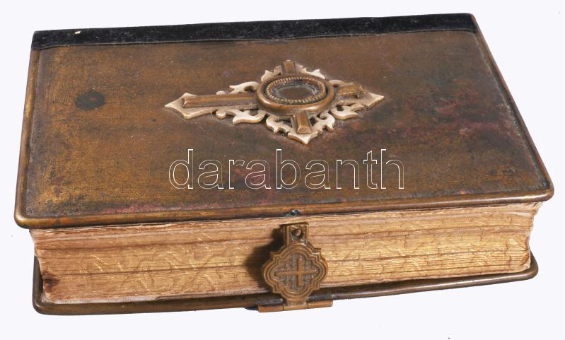 Leírás: [Munkay János (1820-1890)] Munkai János (szerk.): Mennyei nefelejts. Imakönyv keresztény katholikusok használatára. Winterberg, é.n. (cca 1880), Steinbrener J., 1 t.+ 384 p. Fémlemez borítású kötésben, pótolt gerinccel, kissé foltos lapokkal, néhány lapon bejegyzésekkel.