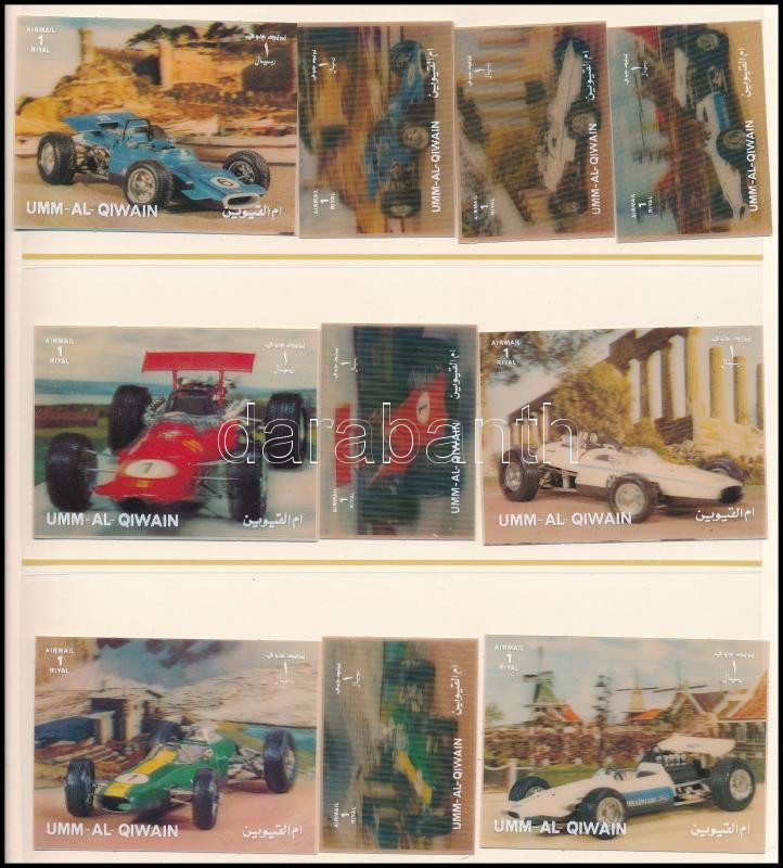 1972 Versenyautók 3D sor + nagyméretű sor Mi 809-813 + Mi 814-818 https://www.darabanth.com/hu/513-Filatelia-kepeslap-numizmatika-mutargy-konyv-papirregiseg-ekszer-aukcio/513.0/Kulfoldi-filatelia-es-postatortenet/Umm-al-Quwain~1009/1972-Versenyautok-3D-sor-plus-nagymeretu-sor-Mi-809-813-plus-Mi-814-818~II3467653