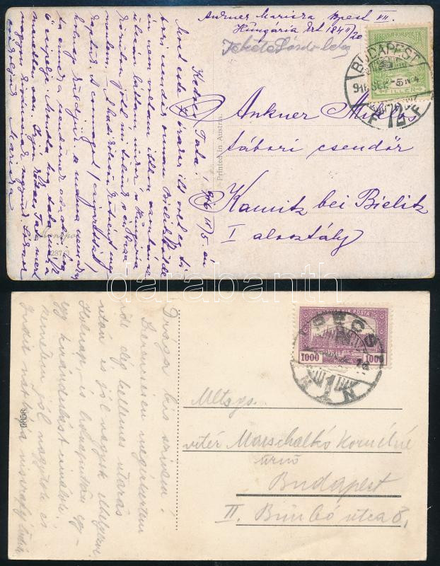 Leírás: 1916 2 db képeslap, az egyik vitéz Marschalkó Kornél, a másik Ankner Miklós tábori csendőrnek címezve