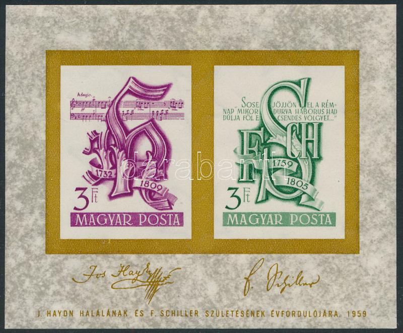 Leírás: 1959 Joseph Haydn és Friedrich Schiller blokk (5.000) (pici betapadás / tiny gum disturbance)