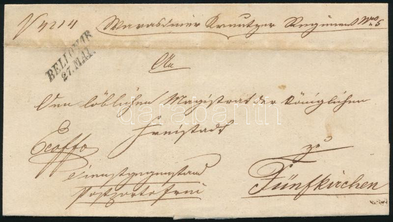 Leírás: ~1845 Ex offo levél "BELLOVAR" - "Fünfkirchen"