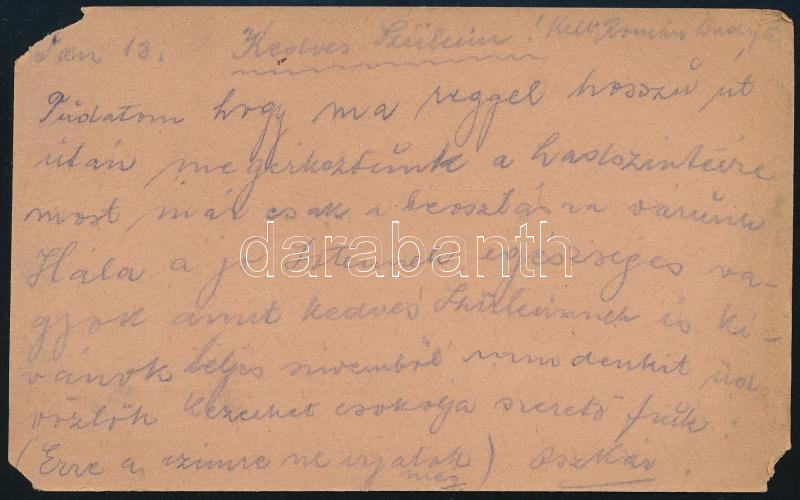1917 Tábori posta levelezőlap "FP 234" + "60cm besp. M.... https://www.darabanth.com/hu/513-Filatelia-kepeslap-numizmatika-mutargy-konyv-papirregiseg-ekszer-aukcio/513.0/Magyar-filatelia-es-postatortenet/I-Vilaghaborus-osztrak-magyar-tabori-posta~35/1917-Tabori-posta-levelezolap-FP-234-plus-60cm-besp-M-15-Feld-Bel-Gerat-Nr20~II3472441