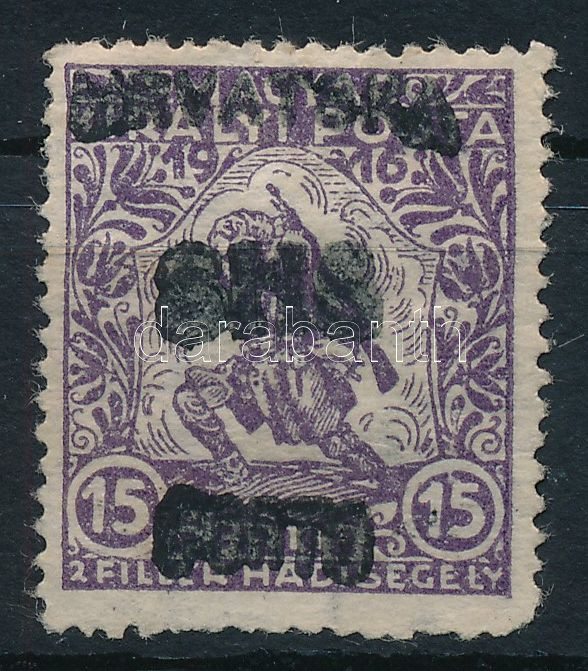 Leírás: SHS 1919 Zágrábi szükségportó felülnyomás Hadisegély (III.) 15f bélyegen eltömődött felülnyomással