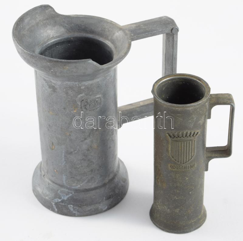 Leírás: 2 darab ón mérce edény, m: 7-9 cm