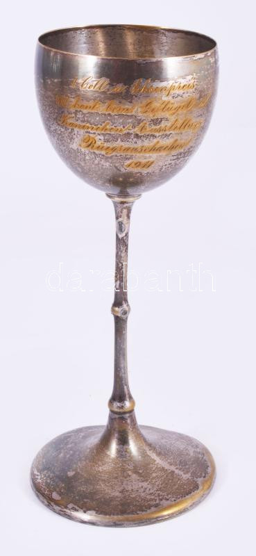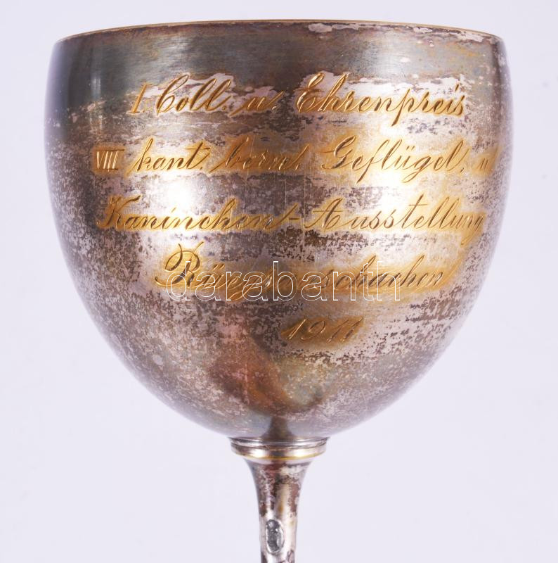 Leírás: Jelzett ezüstözött serleg, talpán horpadással, m: 22 cm