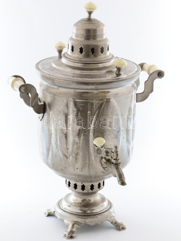Régi orosz szamovár, nikkelezett réz/alpakka, jelzett, m:48 cm https://www.darabanth.com/hu/513-Filatelia-kepeslap-numizmatika-mutargy-konyv-papirregiseg-ekszer-aukcio/513.0/Mutargy-papirregiseg-egyeb/Bolhapiac~65/Regi-orosz-szamovar-nikkelezett-rezalpakka-jelzett-m48-cm~II3404888