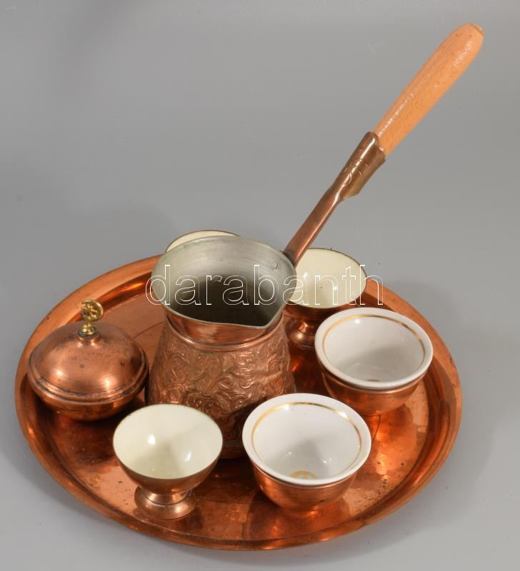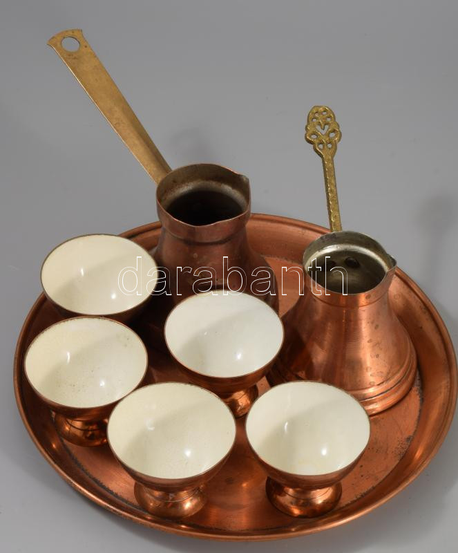Réz kávézó szett, 10 csészével, 2 tálcán. https://www.darabanth.com/hu/513-Filatelia-kepeslap-numizmatika-mutargy-konyv-papirregiseg-ekszer-aukcio/513.0/Mutargy-papirregiseg-egyeb/Bolhapiac~65/Rez-kavezo-szett-10-cseszevel-2-talcan~II3468656
