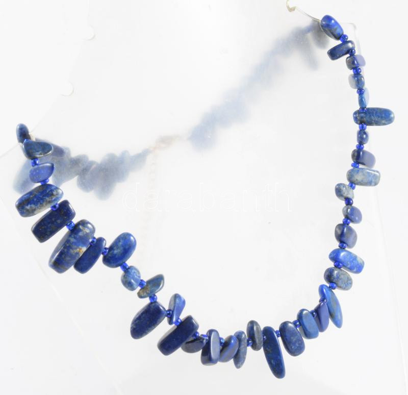 Lapis lazuli nyaklánc, h: 38 cm https://www.darabanth.com/hu/513-Filatelia-kepeslap-numizmatika-mutargy-konyv-papirregiseg-ekszer-aukcio/513.0/Mutargy-papirregiseg-egyeb/Design-divat~63/Lapis-lazuli-nyaklanc-h-38-cm~II3469596