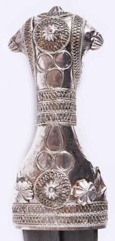 Dísz kindzsál, ezüsttartalmú szerelékkel, h: 19 cm https://www.darabanth.com/hu/513-Filatelia-kepeslap-numizmatika-mutargy-konyv-papirregiseg-ekszer-aukcio/513.0/Mutargy-papirregiseg-egyeb/Fegyverek-kesek~89/Disz-kindzsal-ezusttartalmu-szerelekkel-h-19-cm~II3465171