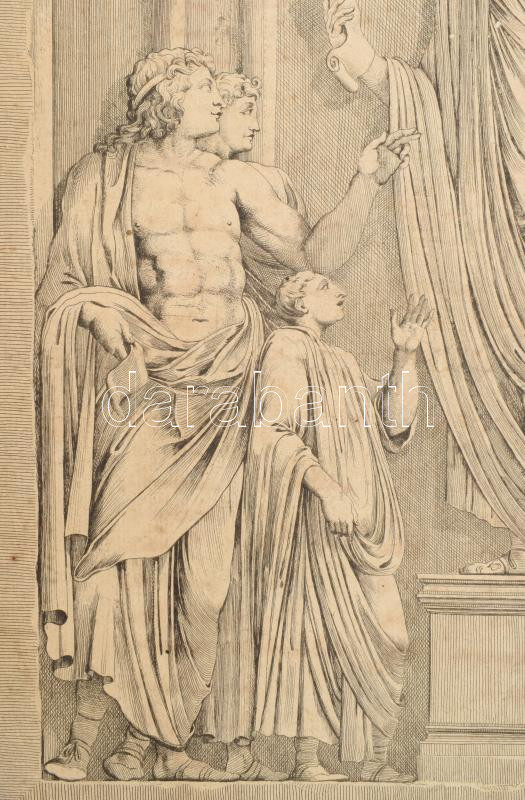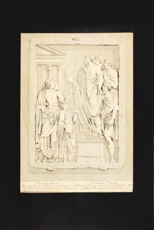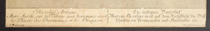 Leírás: Marcus Aurelius császár a provinciák küldötteit fogadja. Rézemetszet. ca 1780. G. F. Riedel - Joh. Gradmann. 26x35 cm, Paszpartuban