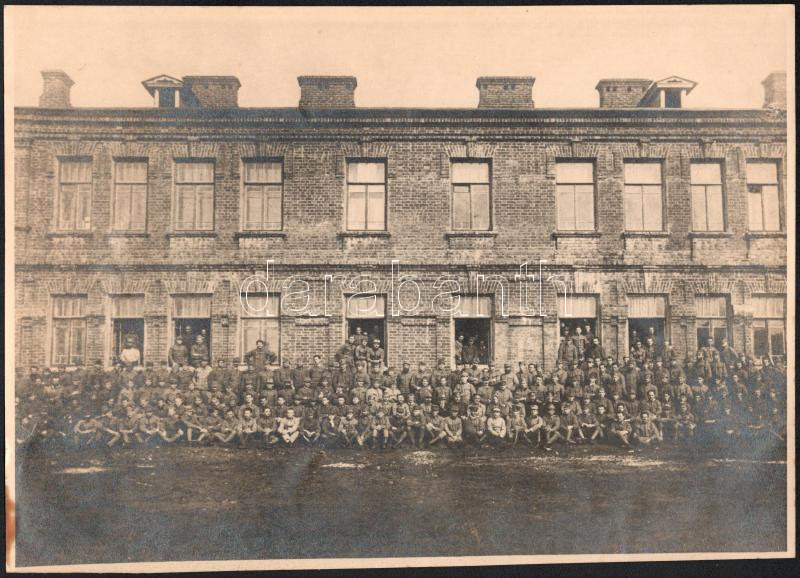cca 1920-1930 Katonai csoportkép a laktanya épülete előtt, nagyméretű ...