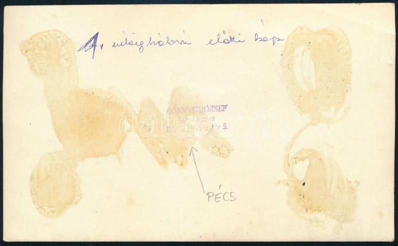 cca 1940-1943 Katonák csoportképe, Könnyű József pécsi fényképész felvétele, 16×9,5 cm