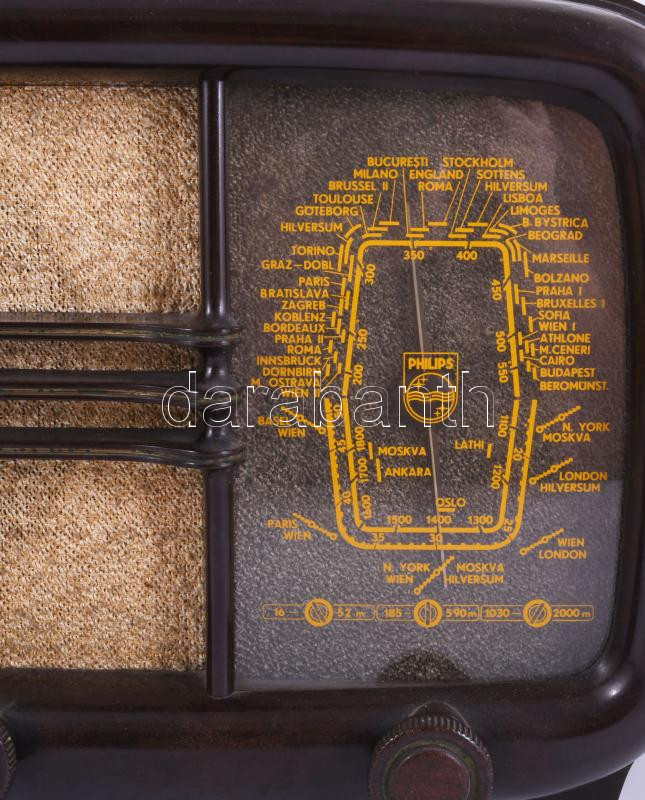 1949/1950 Philips Rhapsodie BA393A rádió, 38x24 cm https://www.darabanth.com/hu/513-Filatelia-kepeslap-numizmatika-mutargy-konyv-papirregiseg-ekszer-aukcio/513.0/Mutargy-papirregiseg-egyeb/Mutargyak-antikvitas~59/19491950-Philips-Rhapsodie-BA393A-radio-38x24-cm~II3466076