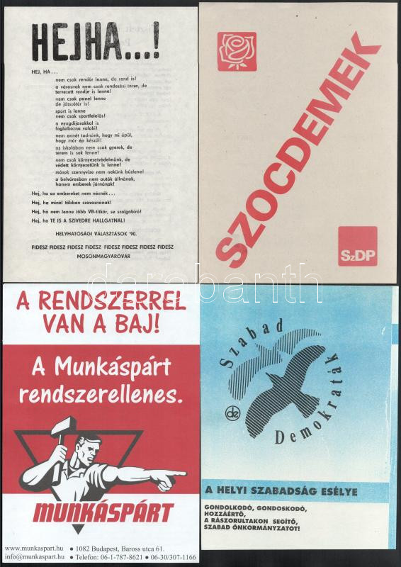 Leírás: 24 db politikai, választási röplap (Munkáspárt, Szabad Demokraták, MDF, KDNP, stb.)