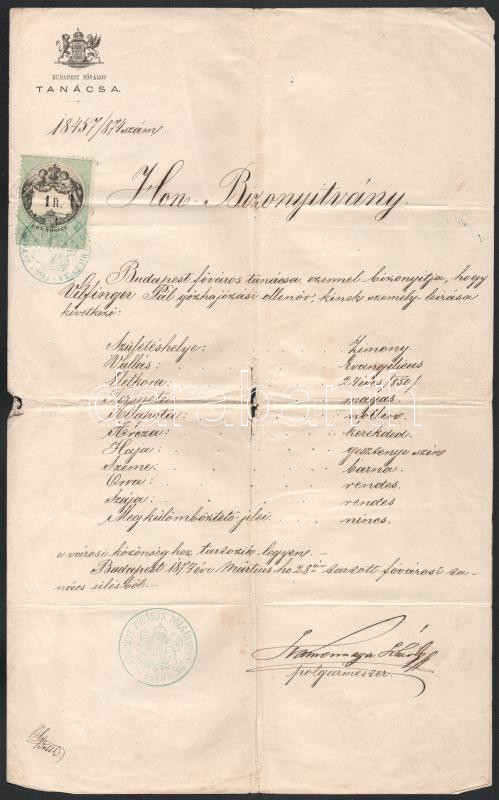 1874 Bp., Kamermayer Károly (1829-1897) Budapest polgármesterének aláí... https://www.darabanth.com/hu/513-Filatelia-kepeslap-numizmatika-mutargy-konyv-papirregiseg-ekszer-aukcio/513.0/Mutargy-papirregiseg-egyeb/Okmanyok~80/1874-Bp-Kamermayer-Karoly-1829-1897-Budapest-polgarmesterenek-alairasa-bizonyitvanyon~II3468290