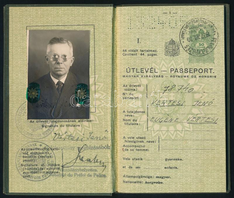 1937-1939 A Magyar Királyság fényképes útlevele nyugdíjas iskolaigazga... https://www.darabanth.com/hu/513-Filatelia-kepeslap-numizmatika-mutargy-konyv-papirregiseg-ekszer-aukcio/513.0/Mutargy-papirregiseg-egyeb/Okmanyok~80/1937-1939-A-Magyar-Kiralysag-fenykepes-utlevele-nyugdijas-iskolaigazgato-reszere~II3473284