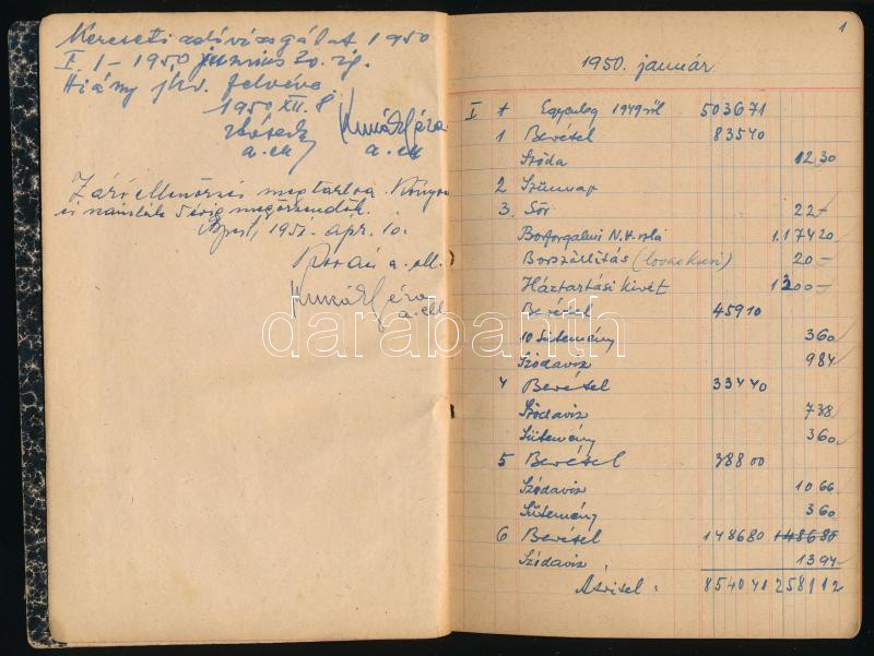 1949-1950 Hupfer Rezső kőbányai kocsmáros pénztárkönyve https://www.darabanth.com/hu/513-Filatelia-kepeslap-numizmatika-mutargy-konyv-papirregiseg-ekszer-aukcio/513.0/Mutargy-papirregiseg-egyeb/Okmanyok~80/1949-1950-Hupfer-Rezso-kobanyai-kocsmaros-penztarkonyve~II3469811