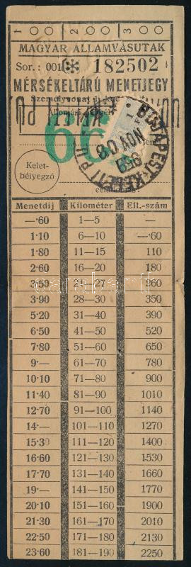 Leírás: 1959 Magyar Államvasutak mérsékelt árú menetjegy, biztosítási bélyeggel ellátva