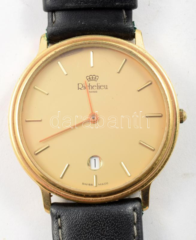 Richelieu svájci karóra, szíjjal, kvarc, napkijelzéssel, d: 32 mm https://www.darabanth.com/hu/513-Filatelia-kepeslap-numizmatika-mutargy-konyv-papirregiseg-ekszer-aukcio/513.0/Mutargy-papirregiseg-egyeb/Orak~1021/Richelieu-svajci-karora-szijjal-kvarc-napkijelzessel-d-32-mm~II3473547