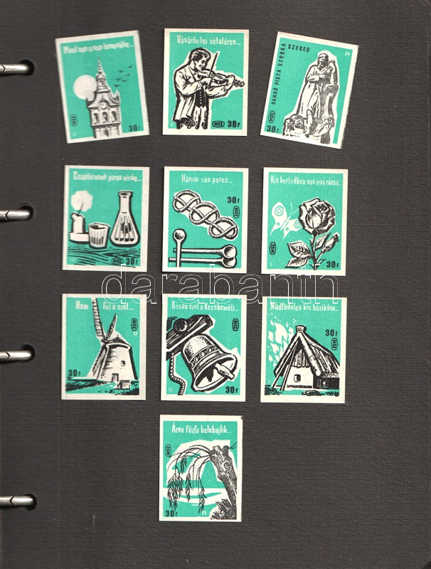 [Gyűjtemény] Az 1858-ben alapított Szegedi Gyufagyár gyufacímkéi az 1960-as évekből. Társadalmi üzenetekben gazdag kollekció, 43 kétoldalas tábláján összesen 496, színes gyufacímkével.