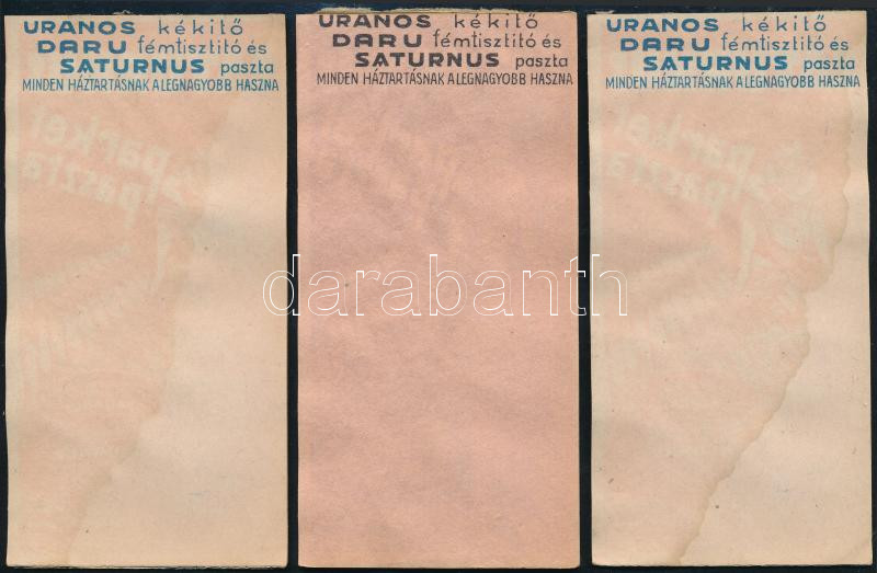 Saturnus parket paszta tömb, kb 22 db számolócédulával https://www.darabanth.com/hu/513-Filatelia-kepeslap-numizmatika-mutargy-konyv-papirregiseg-ekszer-aukcio/513.0/Mutargy-papirregiseg-egyeb/Reklam~85/Saturnus-parket-paszta-tomb-kb-22-db-szamolocedulaval~II3453002