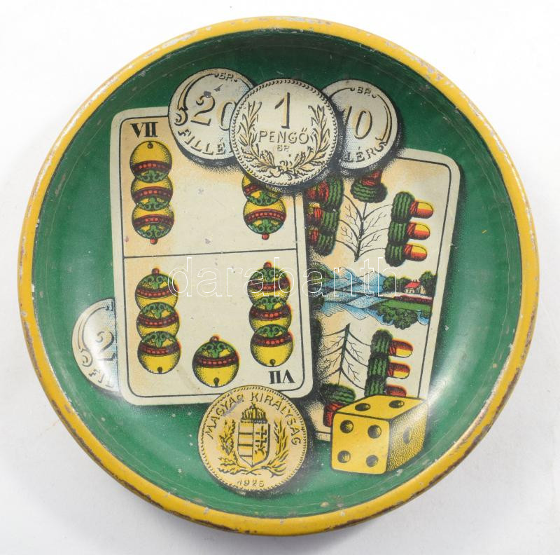 cca 1930-1940 Kártyalapokat ábrázoló fém tálka, kopásnyomokkal, d: 10,... https://www.darabanth.com/hu/513-Filatelia-kepeslap-numizmatika-mutargy-konyv-papirregiseg-ekszer-aukcio/513.0/Mutargy-papirregiseg-egyeb/Reklam~85/cca-1930-1940-Kartyalapokat-abrazolo-fem-talka-kopasnyomokkal-d-10-5-cm~II3472675