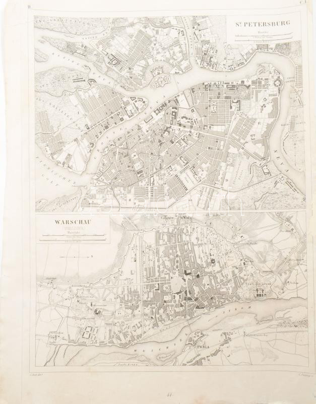 Leírás: 2 db térkép: Die nationale Zusammensetzung der Befölkerung in der versschiedenen Staaten von Europa, Varsó és Szentpétervár térképe