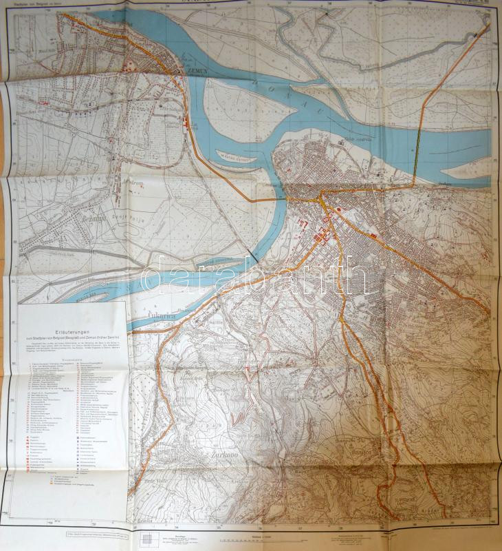 Leírás: ca 1940 Belgrád és Zimony német katonai térkép. 80x90 cm