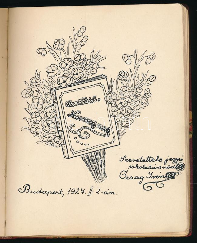 1925-1929 Bp., régi emlékkönyv kb. 25 oldalnyi bejegyzéssel, néhány ra... https://www.darabanth.com/hu/513-Filatelia-kepeslap-numizmatika-mutargy-konyv-papirregiseg-ekszer-aukcio/513.0/Mutargy-papirregiseg-egyeb/Tortenelmi-dokumentumok-keziratok-erdekessegek~81/1925-1929-Bp-regi-emlekkonyv-kb-25-oldalnyi-bejegyzessel-nehany-rajzzal~II3470220